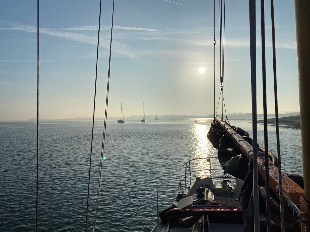 Molly in the distance, viewed from ashore in ShalfleetOne of the most beautiful places to spend a night.