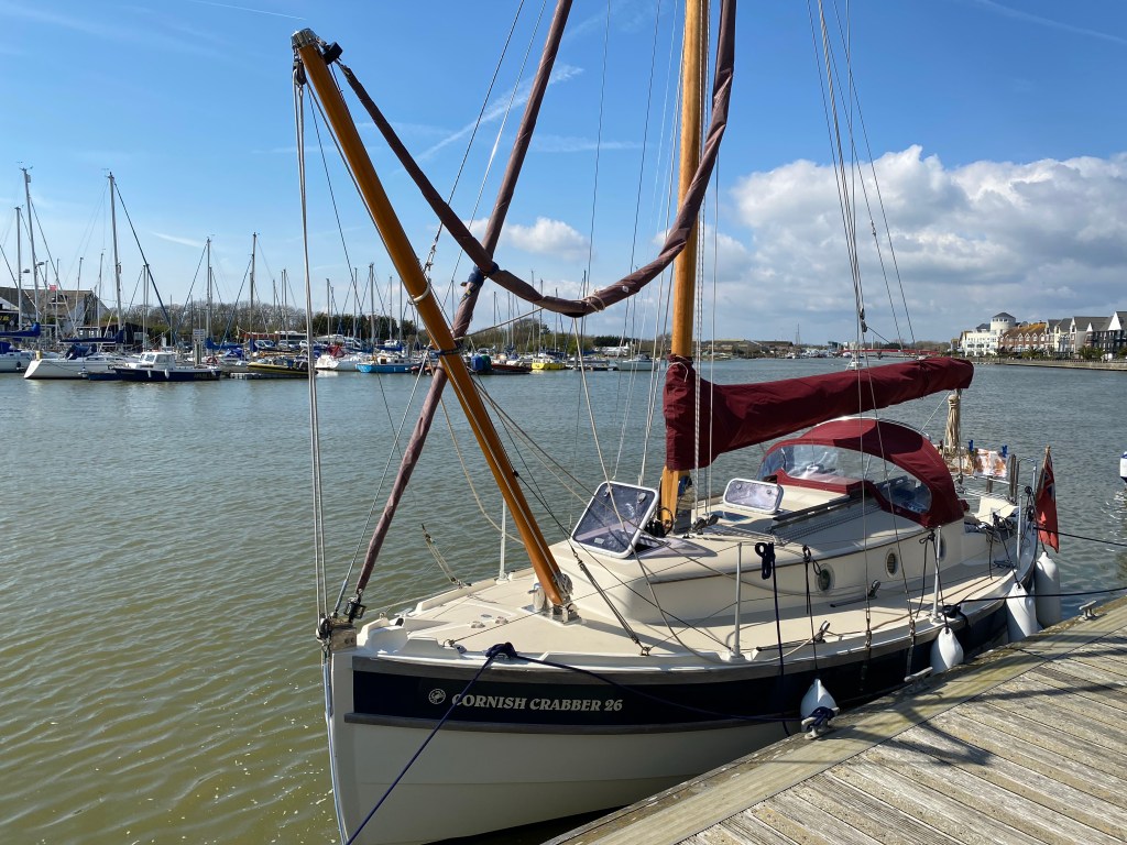 Once through the bun fight that is Cowes, the Medina calms down considerably and it’s a very pleasant trip up the river through the moorings to Island Harbour. This is a converted tide mill with a lock and a very characteristic round concrete control tower. The staff are super helpful and I was soon tied up on one of their generously wide berths among the other Crabbers.
