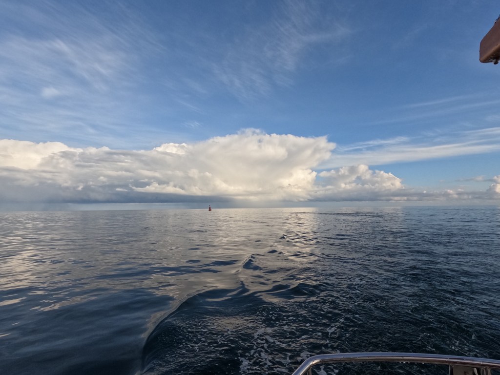 During this leg, we encountered the dreaded weed. The Markermeer is an almost uniform 4m deep in this area and there are large patches of water plant in places. This has long fronds which can entangle boats. We could hear the fronds brushing Molly’s underside at times and several times under engine we could hear the revs drop. Clearly we had passed over weed beds and some had caught around the stern. I found that a big burst of astern cleared it, but our centre plate makes us vulnerable. We seem to have escaped unscathed but next time we anchor, I’ll don my mask and take a look for myself.