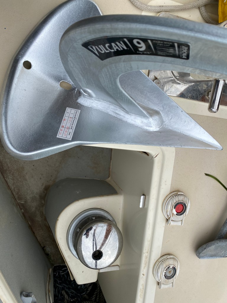 My main order of the day, following yesterday’s experience was to replace my anchor for something more grippy before departing. After reading around, the ground tackle of choice seemed to be either a Rocna or its later development, the slightly more compact Vulcan. It was reassuring to know that not only had others testified to its holding but importantly also reported that it fitted the anchor locker of the Crabber 26.
