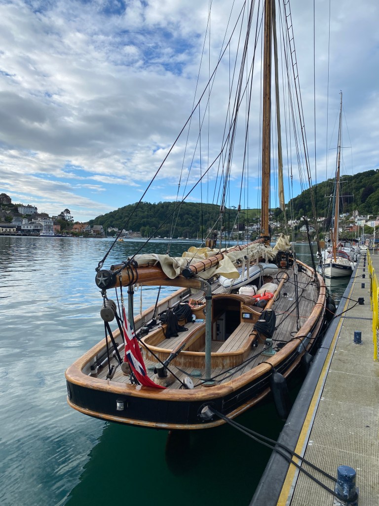 After two nights, we dropped down the Tamar, through Plymouth sound and into the Yealm. Conditions were very blustery and just as we passed the breakwater, there was a thunder and lightning accompanied by a squall which flipped our dinghy. Nonetheless we arrived in Noss Mayo unharmed and spent two more nights in its shelter, enjoying some lovely walks through Newton Ferrers and a loop along the coast walk.
