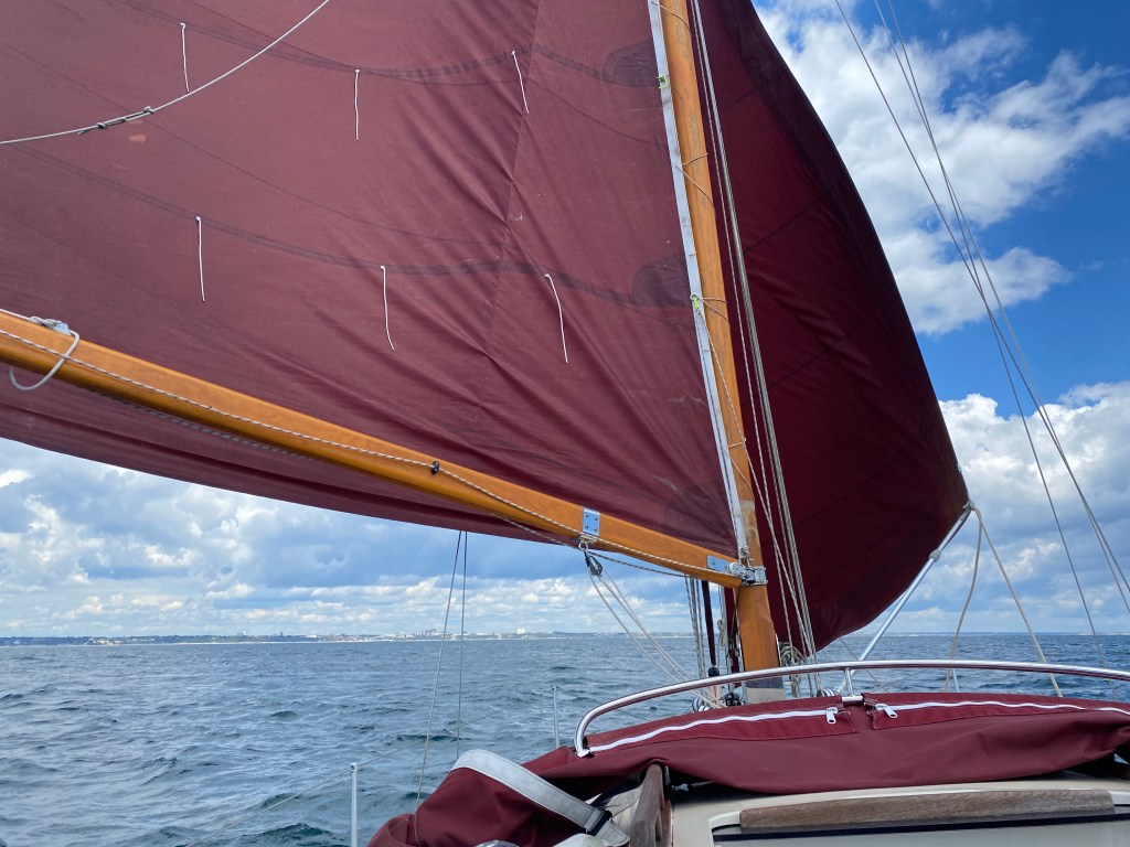 Although we had the main up, it was not working at all and it was not a very peaceful passage down the Devon coast; although there was little swell, the sea felt confused without the drive of the sails and gave us an uncomfortable motion. We passed by some of my favourite diving sites at Hilsea point and the Persier wreck in Bigbury Bay, where we could see the mouths of the Erme and Avon from afar. I thought, not for the first time, that I wished there was time to explore these places.