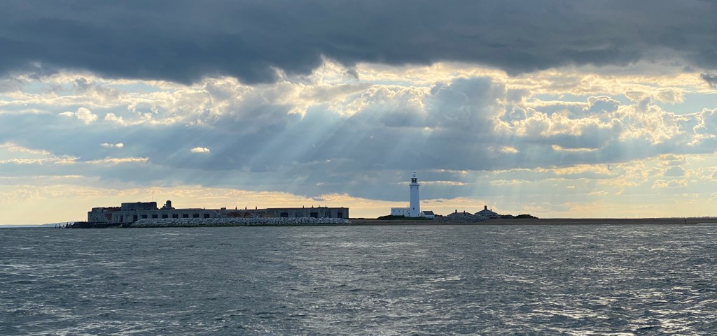 The wind backed during the morning and we ended up being headed over towards the Lee-on-Solent shore and needed to tack to pass around Gilkicker Point. Up to this point we had enjoyed bright sun and relished our leisurely sail up the Solent, but I could see the forecast bad weather approaching, so we motorsailed our beat up to the harbour entrance.