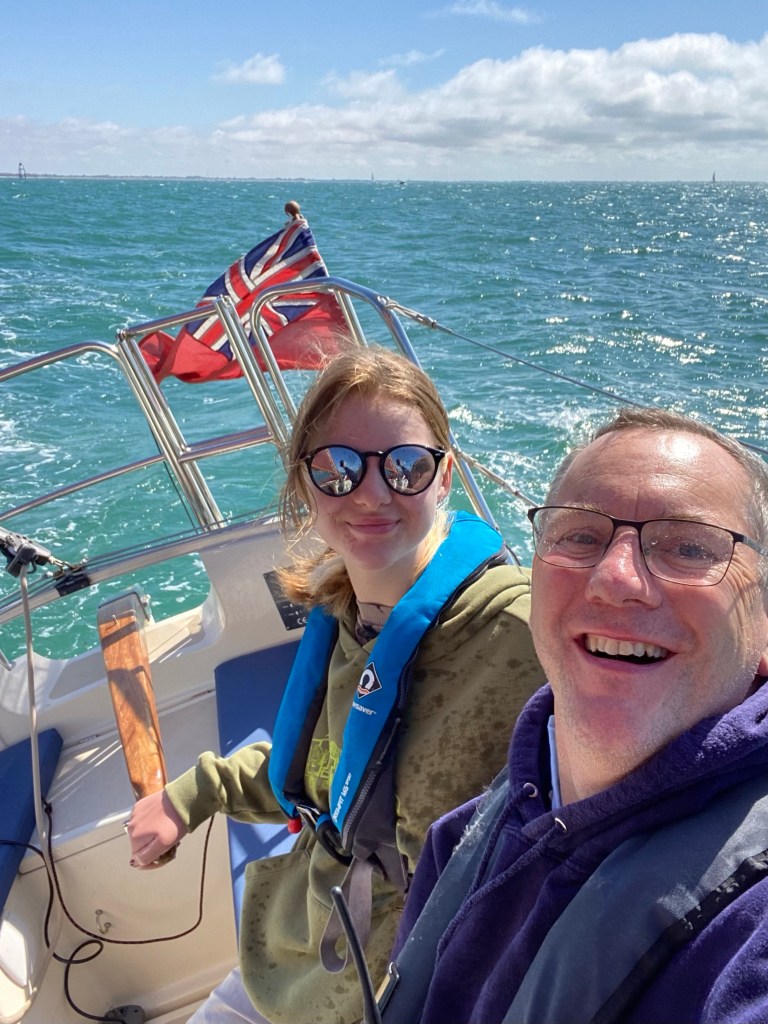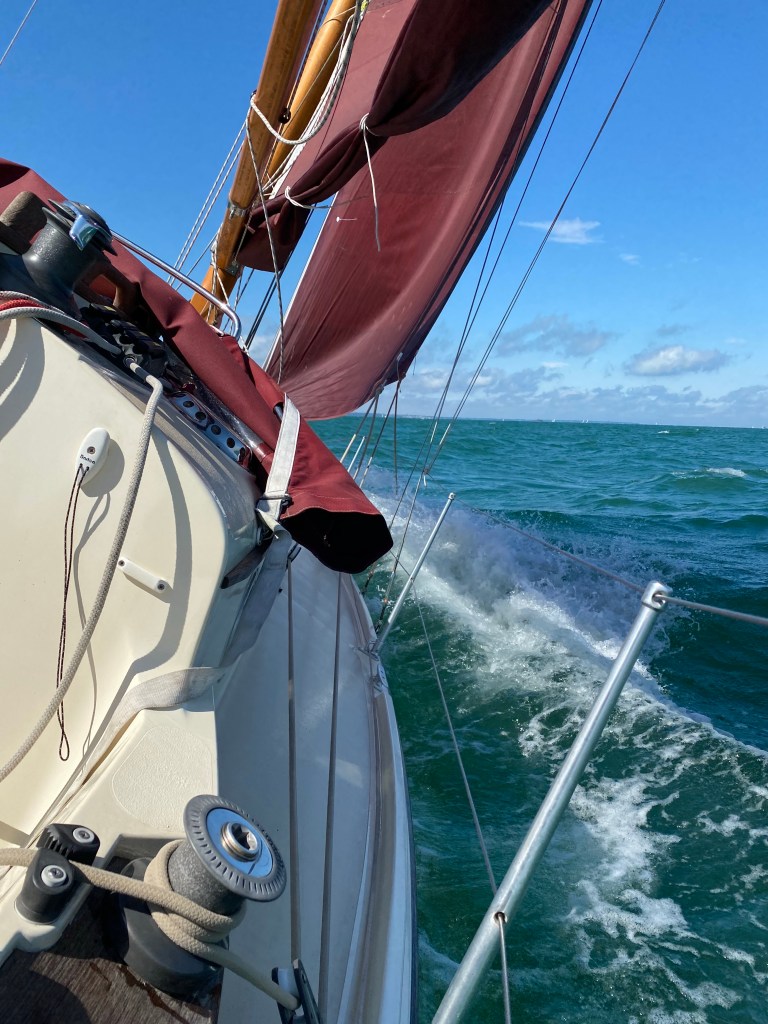 This was Alice’s first sailing trip since we took over Molly, and she was very pleasantly surprised with the accommodation; as it was just me and her, I gave her the forepeak, much to her satisfaction. The weather was ideal, with warm sun and a nice SW sailing breeze. We had a leisurely start and enjoyed the hustle and bustle of Portsmouth harbour as we followed the steady stream of boats leaving harbour on the falling tide.
