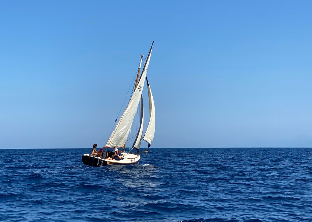 We owned our previous boat Aurora, a Cape Cutter 19 for 10 years and made many friends in that time. It was how we got to know Chris and Kathryn Wicks, who live in the beautiful Pelion area of Greece and run the lovely Olive Store cottage. An added attraction of staying there is to join them on their forays aboard Kaliope, their Cape Cutter 19.