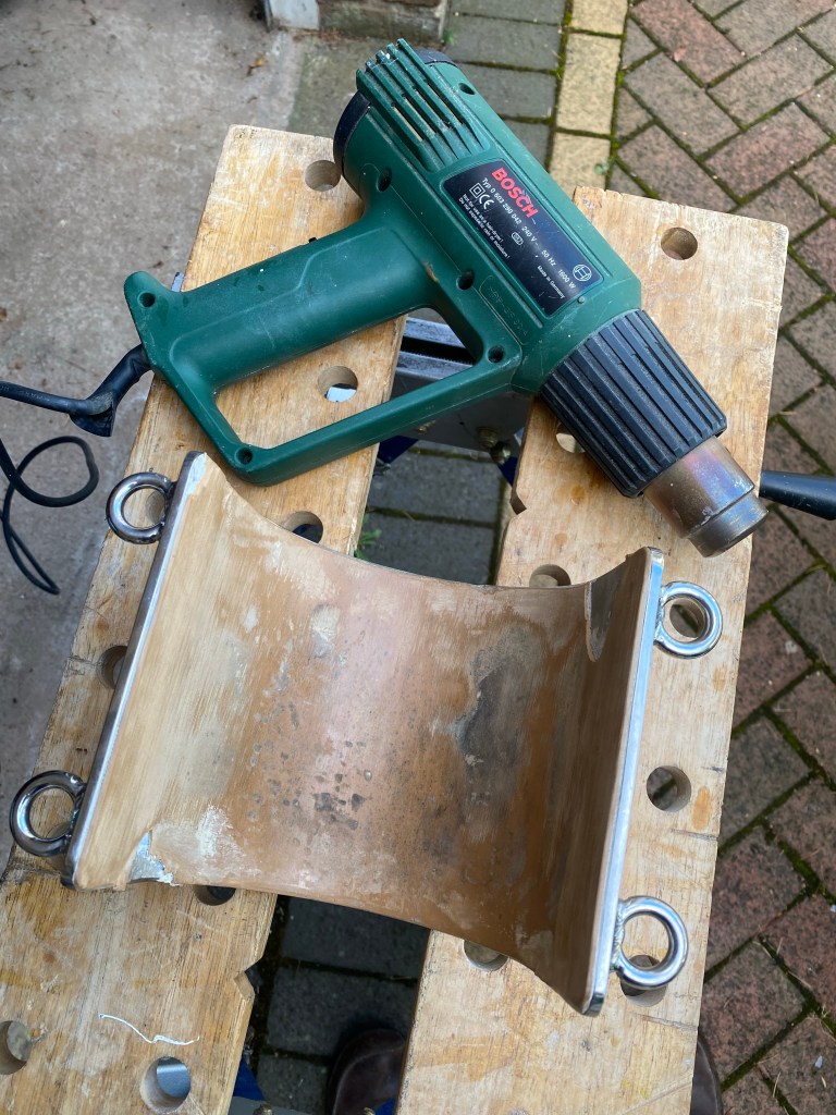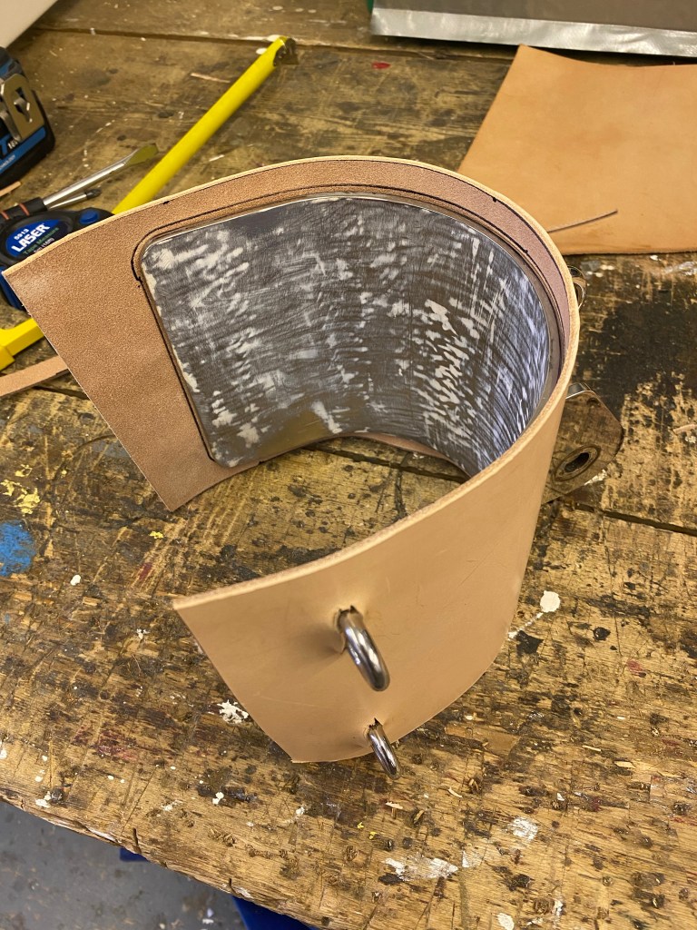 On traditional gaffers, the gaff jaws are often covered in leather to help them slide along the mast and prevent wear on the mast. Whilst the Crabber 26 is not a traditional gaffer, I do like the “leather look” and it’s not that hard to do.