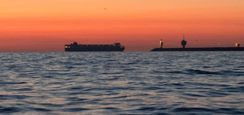 As if to remind us of the comparative slowness of travelling in the shelter of inland waterways, the “blue wave” from Middelburg to Vlissingen was frustratingly slow. We then had a longer wait than expected at the sea lock.