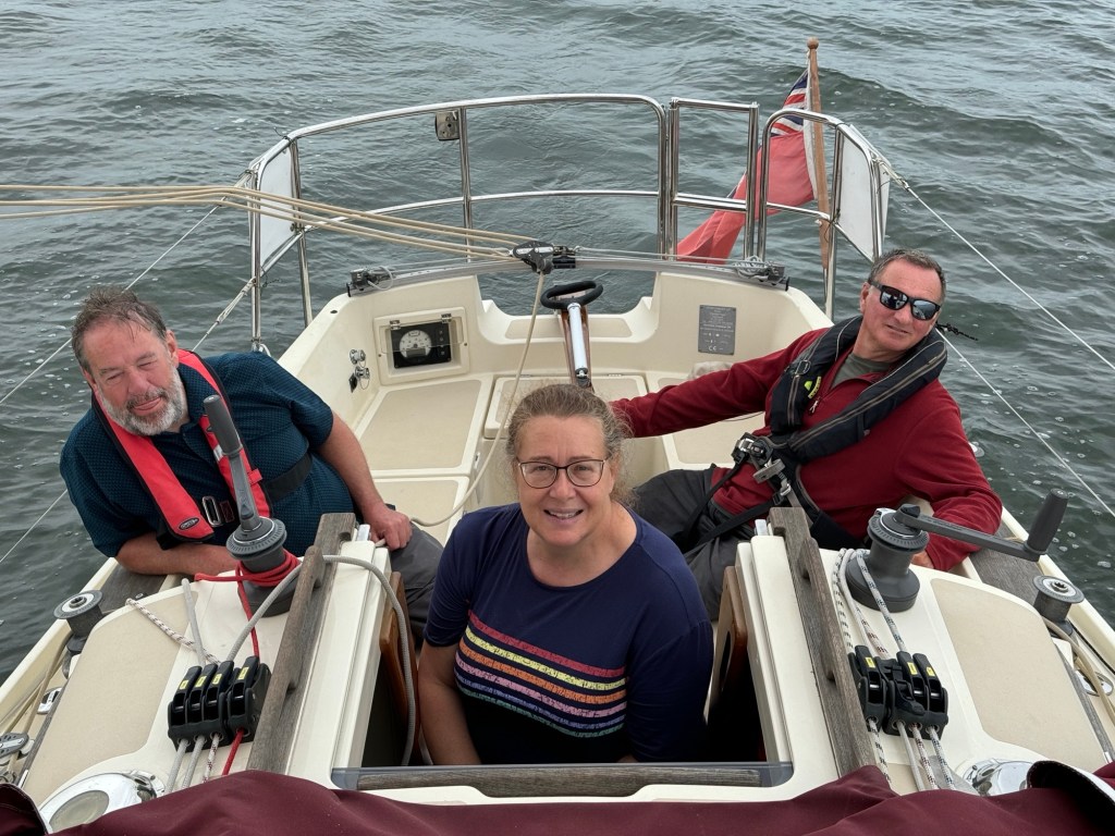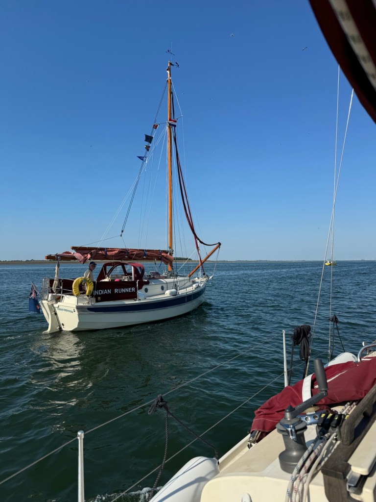 After a while, we we visited by local fellow gaffer owner Rik who offered us a lift to the bar whilst we waited. As I knew we had a couple more hours to wait, I inflated our tender and ferried some of our party ashore. Rik very kindly drove us to the sailing club bar, where we bought ice creams back for everyone.