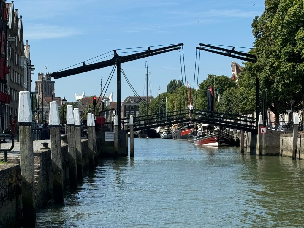 On Saturday afternoon Niki joined the boat and we attended the formal opening of the rally and on Monday made our way to the next port, Dordrecht. We chose a river route, following the tidal Spui to join the Oude Maas (“old river Maas”). The former was very rural surrounded by fields and dotted with swimming places, whereas the latter was busier and more industrial with a lot of commercial traffic. We had to negotiate a couple of major junctions, the AIS was really useful here for being able to spot commercial traffic coming round the corner.