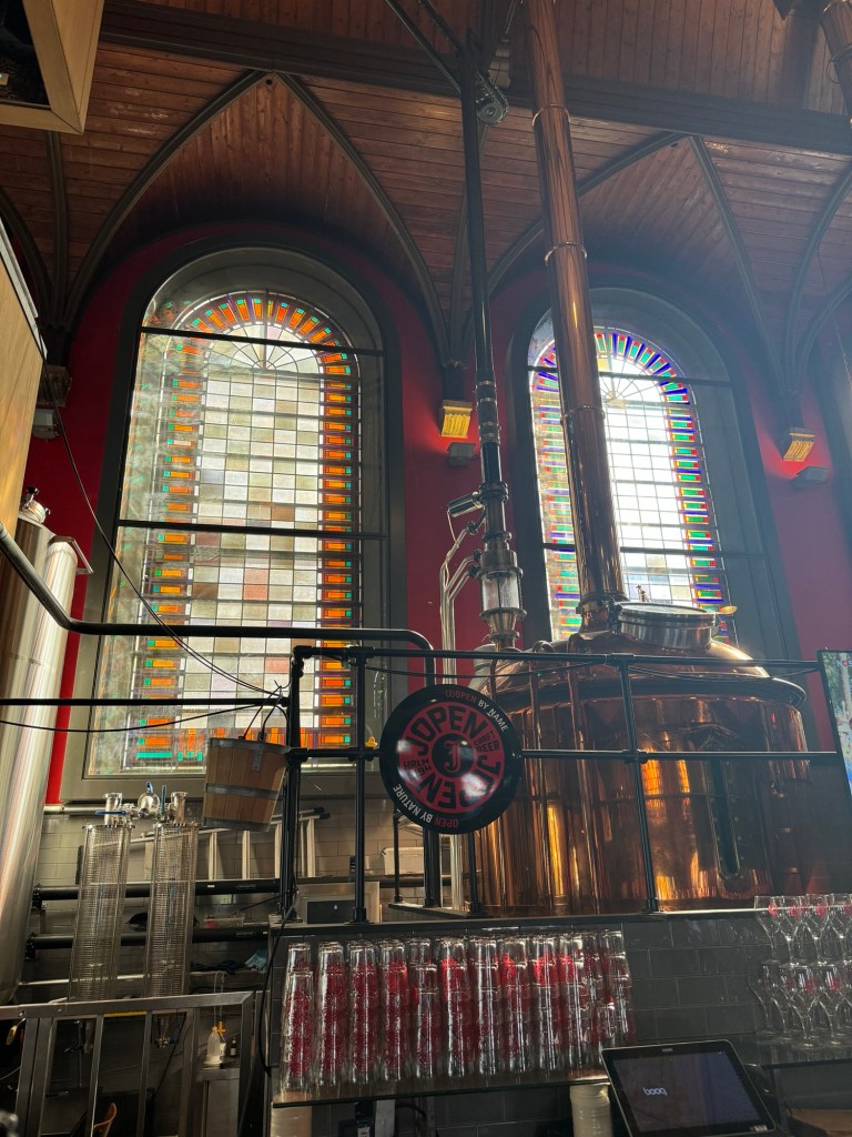 On the second night we tasted some of the different beers at the Jopen brewery, housed in a repurposed church. The weather was scorching hot, so cold beers were very welcome! We invited the crews of Puffin and Windbreker aboard Molly for dinner and had a most enjoyable evening – beef dhansak from the thermal cooker.