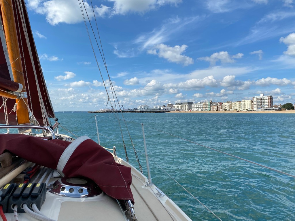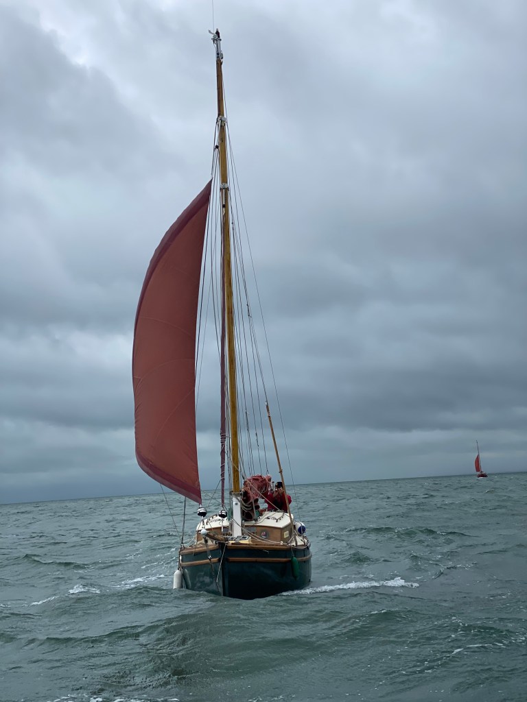 The first skirmish of the Battle of the Zuiderzee was fought during this passage. We towed clogs again but had also been set the task to pass a capsule containing the sailing instructions from boat to boat whilst we were underway. We saw the heaving line cast from Stardust to Clytie and then to Bonita. Bonita passed it to us during a slightly hairy close pass.