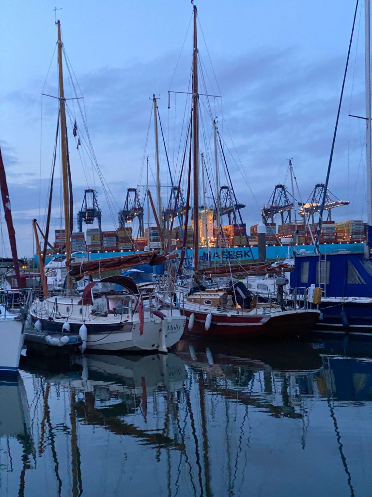 We enjoyed two nights in Hoorn, and on the second hosted an exchange meal aboard Molly. Each English crew was paired at random with a Netherlands crew, in order to further foster Anglo-Dutch friendship. Our guests were Maud and Freek, of Bluebird, a beautiful wooden 1912 Bermudan racing boat. We were treated to wonderful platter of local smoked fish for a starter and team Molly reciprocated with coq au vin from the thermal cooker. The gin and tonic aperitifs, followed by some lovely red wine ensured a convivial evening.
