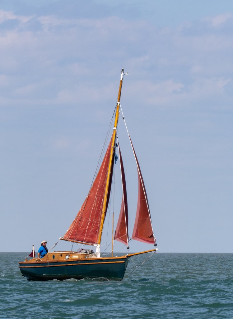 This gave us a day in Plymouth sightseeing, including a Rolls Royce in the lido (a tribute to Keith Moon, apparently) and the fireworks championships viewed from our pontoon. We were welcomed into the marina by a fellow gaffer, Chris, owner of a a lovely Oysterman 22 .