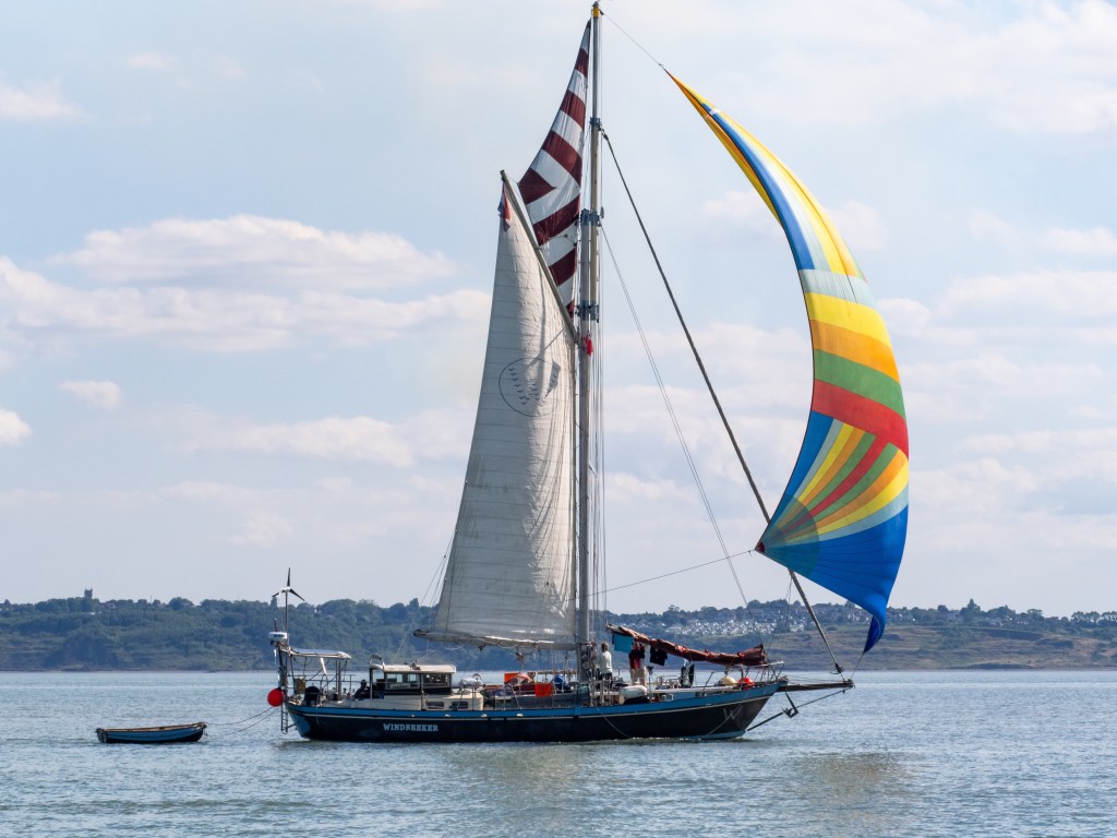 After two nights, we dropped down the Tamar, through Plymouth sound and into the Yealm. Conditions were very blustery and just as we passed the breakwater, there was a thunder and lightning accompanied by a squall which flipped our dinghy. Nonetheless we arrived in Noss Mayo unharmed and spent two more nights in its shelter, enjoying some lovely walks through Newton Ferrers and a loop along the coast walk.
