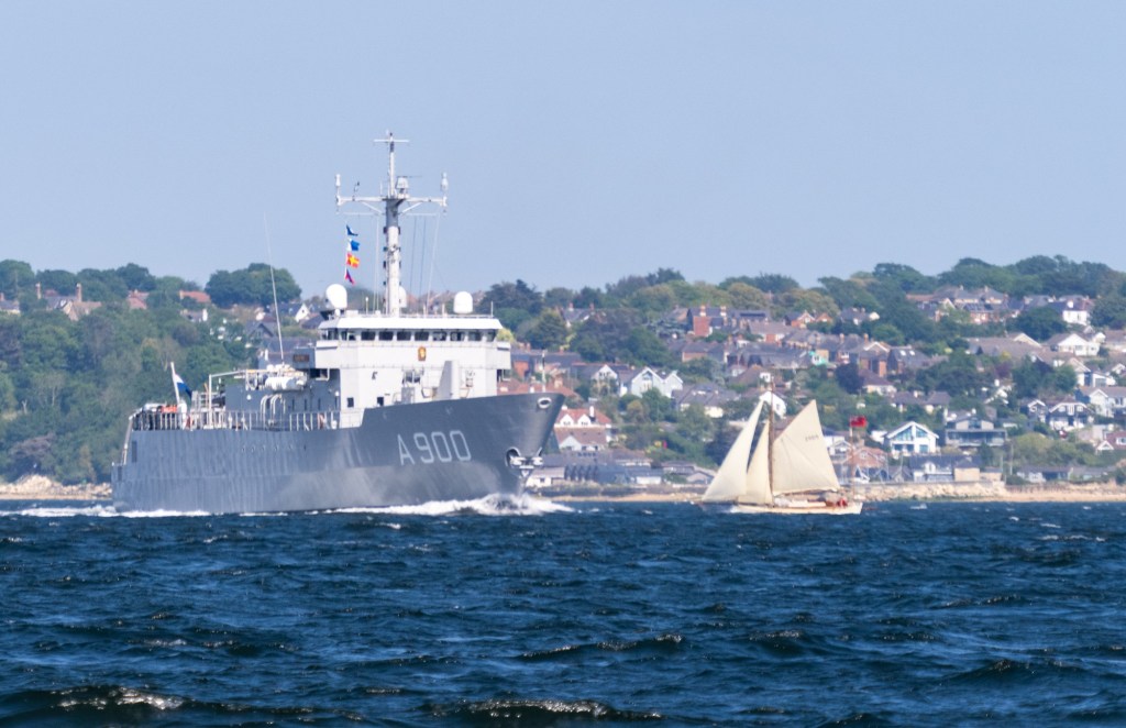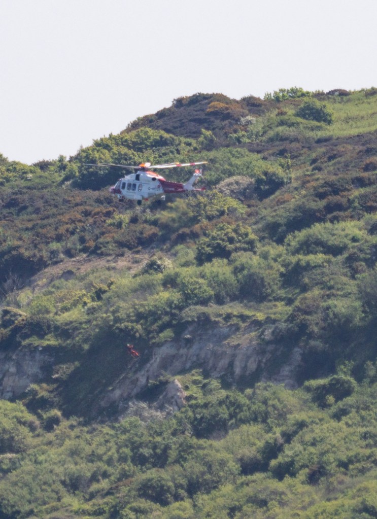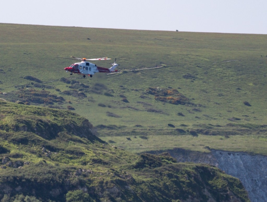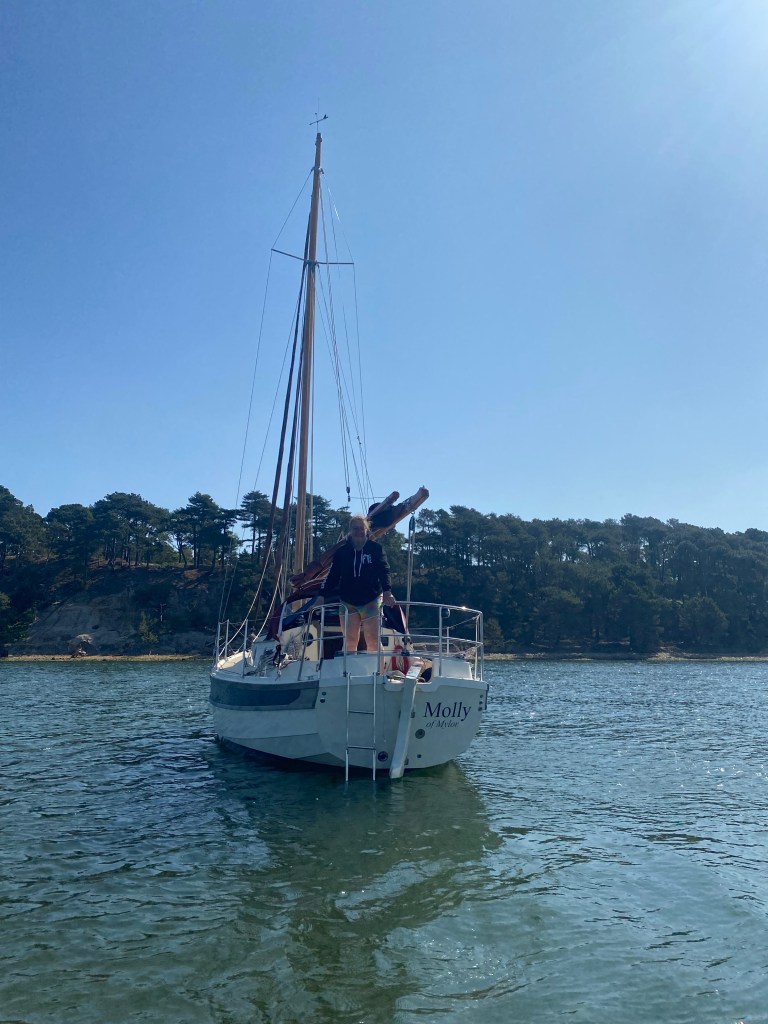 We set off from Yarmouth with the ebb tide, under jib only. The sea state was smooth and we enjoyed a sunny ride past the needles. We could see the coastguard rescue helicopter hovering over Alum Bay and lowering a crew; we later learned that a man had been rescued from the beach having been missing overnight.